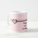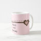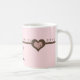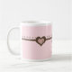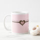 Pretty in pink and chocolate.. 40th birthday mug with soft pink background and chocolate hearts and little scroll designs across the mug. Very elegant, a fun birthday gift for a mom, daughter, aunt, friend, etc.