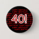 Black, red, and white Happy 40th Birthday design on 40th birthday T-shirts, cards, mugs, buttons, and other 40th birthday items.