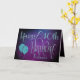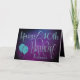 An elegant design with a magical and mystical vibe to send your 40th birthday wishes. Happy Birthday is set in an decorative script typography in shades of blue, and the age is in a cordinating typeface along with your recipient’s name, on a watercolor style background in shades of purple. You can change the message inside to your own greeting if you wish and easily personalise the age and name on the front. Faux sparkle teal balloons add the perfect finishing touch on the front! The same colored background continues on the inside.