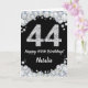 Happy 44th Birthday Black and Silver Glitter Card with personalized name. For further customization, please click the "Customize it" button and use our design tool to modify this template.