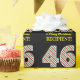 This fun and simple Christmas themed and birthday themed December 25th birthday wrapping paper design features a large number "46" with a green/white/red stripes pattern, along with the message "Happy 46th Birthday & Merry Christmas,", and a customizable name. The background is colored black. Wrapping paper like this might be a fun way to wrap presents or gifts that are being given to somebody whose forty sixth birthday falls on December 25th (Christmas Day). [~Z0000406]
