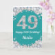 Happy 49th Birthday Teal Turquoise Aqua and Silver Glitter Card with personalized name. For further customization, please click the "Customize it" button and use our design tool to modify this template.