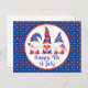 Cute illustration of garden gnomes in the theme of red, white, and blue for the Fourth of July. Equipped with an American flag, firework rocket, and cute heart.