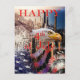 Postcard with a 4th of July theme, featuring a bald eagle with flag and fireworks.