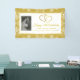 HAPPY ANNIVERSARY EVENT BANNER - FAUX GOLD FOIL: Two festive linked hearts in faux gold foil with golden champagne bubbles pattern background and your custom text. Fully customizable for your anniversary celebration, wedding, engagement, or Valentine's Day event.