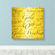 Word art print with happy 50th Anniversary, golden wedding typography on canvas. Anniversary gift available with custom personalized words.