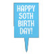 Happy 50th Birthday cake topper celebration picks. Fun personalized surprise Birthday and anniversary party supplies. Suitable for men and women. Blue example with modern typography. Cheerful decorations for cakes and cupcakes. Easily edit color and age number.
