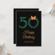 Elegant greenery 50th birthday card. Perfect to send your greetings on the occasion of the fiftieth b-day celebration. The card features 5 and 0 digits made of green leaves and golden orange butterfly on the black background. Back of the card features butterfly. You can easily personalize the name and greeting using Zazzle online tools. If you need help in personalization of this card, don't hesitate to contact me via Zazzle.