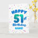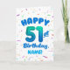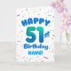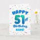 Celebrate their 51st birthday with a bright, cheerful, and personalizable birthday card! This custom name birthday card features a bold number fifty-one balloon and colorful confetti.