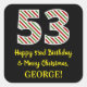 Happy 53rd Birthday & Merry Christmas, Custom Name Square Sticker