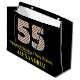 This fun and simple Christmas themed and birthday themed December 25th birthday gift bag design features a large number "55", with a red/white/green stripes pattern. It also features the message "Happy 55th Birthday & Merry Christmas,", and a custom name. The background is colored black. A gift bag like this might be fun to use when wrapping gifts or presents that are being given to somebody who was born on Christmas Day (December 25th) and who is celebrating their fifty fifth birthday. [~Z0000407]