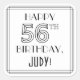 This elegant Roaring Twenties era inspired art deco style birthday themed square sticker design features the message “HAPPY 56TH BIRTHDAY,”, plus a customizable recipient name. The number “56TH” has a fancy geometric lined look, and there is also a multi-line border around the birthday greeting message. Luxurious birthday themed stickers like these might be given out or used at a party for somebody who is celebrating their fifty-sixth birthday, or perhaps used when preparing invitations or wrapping presents for such an event. [~Z0000647]