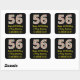 This fun and simple Christmas themed and birthday themed December 25th birthday sticker design features a large number "56", with a red, white, and green stripes pattern. It also features the message "Happy 56th Birthday & Merry Christmas,", and an editable name. The background is colored black. Stickers like this might be a fun way to prepare gifts that are being given to somebody whose fifty sixth birthday falls on December 25th (Christmas Day). [~Z0000409]