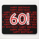 Black, red, and white Happy 60th Birthday design on 60th birthday T-shirts, cards, mugs, buttons, and other 60th birthday items.