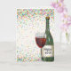 Green wine bottle with red wine in glass and confetti for 60th birthday.