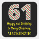 Happy 61st Birthday & Merry Christmas, Custom Name Square Sticker