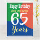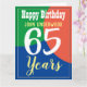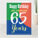 Celebrate a 65th birthday with a personalized card showing recipient's name, and number of years. Add your own personal message inside too. 65 years old.