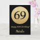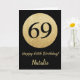Happy 69th Birthday Black and Gold Glitter Card with personalized name. For further customization, please click the "Customize it" button and use our design tool to modify this template.