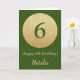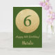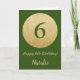 Happy 6th Birthday Green and Gold Glitter Card with personalized name. For further customization, please click the "Customize it" button and use our design tool to modify this template.