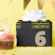 This fun and simple Christmas-themed and birthday-themed December 25th birthday wrapping paper design features a large number "6", with a green/white/red stripes pattern. It also features the message "Happy 6th Birthday & Merry Christmas,", and a customizable name. The background is colored black. Wrapping paper like this might be fun to use when wrapping gifts or presents that are being given to somebody who was born on Christmas Day (December 25th) and who is celebrating their sixth birthday. [~Z0000406]
