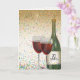 Green wine bottle with two red wine in glasses and confetti for 70th wedding anniversary.