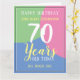 Celebrate a 70th birthday with a personalized card showing recipient's name, number of years, and date. Add a message inside too. 70 years old.