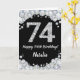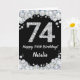 Happy 74th Birthday Black and Silver Glitter Card with personalized name. For further customization, please click the "Customize it" button and use our design tool to modify this template.