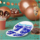 Electric Blue turquoise "Happy Birthday" in relief (not customizable) + first name and large blue 75 to customize. Design on paper plate with white background. Matching paper napkin and more...