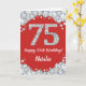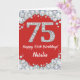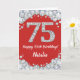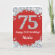 Happy 75th Birthday Red and Silver Glitter Card with personalized name. For further customization, please click the "Customize it" button and use our design tool to modify this template.