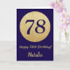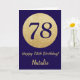 Happy 78th Birthday Navy Blue and Gold Glitter Card with personalized name. For further customization, please click the "Customize it" button and use our design tool to modify this template.
