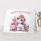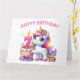 Cute Unicorn in pink and lilac colors. A birthday cake with a Number Seven Candle.