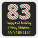 Happy 83rd Birthday & Merry Christmas, Custom Name Square Sticker