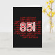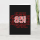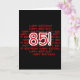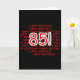 Black, red, and white Happy 85th Birthday design on 85th birthday T-shirts, cards, mugs, buttons, and other 85th birthday items.