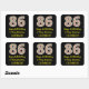 This fun and simple Christmas-themed and birthday-themed December 25th birthday sticker design features a large number "86", with a red/white/green stripes pattern. It also features the message "Happy 86th Birthday & Merry Christmas,", and a custom name. The background is colored black. Stickers like this might be used when preparing presents that are being given to somebody who was born on Christmas Day (December 25th) and who is celebrating their eighty sixth birthday. [~Z0000409]