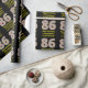 This simple and fun Christmas-themed and birthday-themed December 25th birthday wrapping paper design features a large number "86", with a green/white/red stripes pattern. It also features the message "Happy 86th Birthday & Merry Christmas,", and a custom name. The background is colored black. Wrapping paper like this might be a fun way of wrapping presents or gifts that are being given to somebody who was born on December 25th (Christmas Day) and who is celebrating their eighty sixth birthday. [~Z0000406]