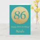 Happy 86th Birthday Teal and Gold Glitter Card with personalized name. For further customization, please click the "Customize it" button and use our design tool to modify this template.