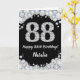 Happy 88th Birthday Black and Silver Glitter Card