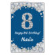 Happy 8th Birthday Blue and Silver Glitter Jumbo Card