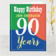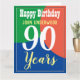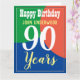 Celebrate a birthday with a personalized card showing recipient's name, and number of years. Add your own personal message inside too. 90 years old.