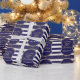 Happy 90th Birthday Gold Glitter and Navy Blue Wrapping Paper with personalized name. For further customization, please click the "Customize it" button and use our design tool to modify this template