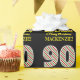 This fun and simple Christmas themed and birthday themed December 25th birthday wrapping paper design features a large number "90", with a green/white/red stripes pattern. It also features the message "Happy 90th Birthday & Merry Christmas,", and a custom name. The background is colored black. Wrapping paper like this might be a fun way to wrap gifts that are being given to somebody whose ninetieth birthday falls on Christmas Day (December 25th). [~Z0000406]