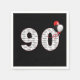 90th birthday party with bold black and white happy and number 90 text on black with party balloon bouquet.