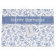 This over-the-hill numeric design is a blue and white random number pattern with a blue milestone number 90 repeated in varied sizes and angles over a white background. There is a printed ribbon banner and a gift tag with text templates so you can easily personalize any or all of the text.