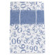 This over-the-hill numeric design is a blue and white random number pattern with a blue milestone number 90 repeated in varied sizes and angles over a white background. There is a printed ribbon banner and a gift tag with text templates so you can easily personalize any or all of the text.