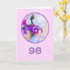 A simple but elegant 98th birthday card with a flower painting. A painting of a vase of flowers is framed in daisies. The whole is on a delicate pink background. The inside message can be changed to your requirements.