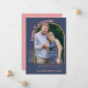 Custom photo pregnancy announcement in gender neutral color palette of navy blue and coral pink. The photo template is set up for you to add your own photo, which is framed in a gold arch with fine sketched foliage. "happy and pregnant" is lettered in bold, arched typography. The remainder of the wording is all fully editable for you customize with your personalized message, baby due date and your own name(s). A chic, modern design to share a picture of your pregnancy.