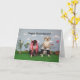 Photo of 2 dogs, one in cheerleader outfit, one as football player. The outside says "Happy Anniversary" and the inside message says "You 2 make a great team."