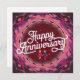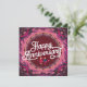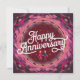 “Vibrant shades of pink and purple create a celebratory backdrop, adorned with confetti-like dots. At the center, elegant white cursive font spells out ‘Happy Anniversary.’ Two stylized figures hold hands, adding a personal touch. Perfect for commemorating a special relationship milestone!”