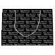 This black and white anniversary gift bag says "Happy Anniversary" in a cursive script. The text you can change to the names of the husband and wife is not in script. This is black gift bag with white text. All text can be edited or deleted.