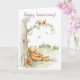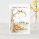 Cute bear couple sitting and cuddling under tree and birds, butterflies around, Happy Anniversary.